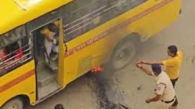 गोपालगंज में भारत बंद के दौरान स्कूल बस में आग लगाने की कोशिश