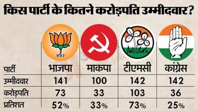 भारतीय जनता पार्टी पर दागी उम्मीदवारों का आरोप, तृणमूल कांग्रेस ने उतारे करोड़पति चेहरे