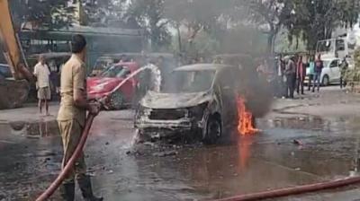 जमशेदपुर में चलती कार में लगी आग, 4 लोगों ने कूदकर बचाई जान...मची अफरा -तफरी