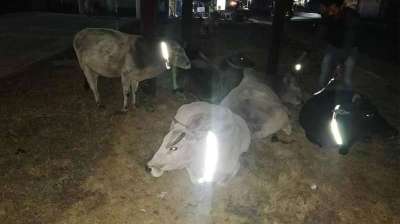 अद्भुत पहल: दुर्घटनाओं से बचाने के लिए मवेशियों को पहना रहे रिफ्लेक्टिव कालर