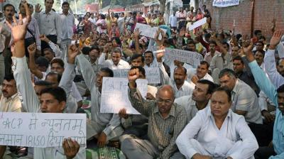 वेतन बकाया से नाराज कर्मचारी, निगम कार्यालय के सामने किया विरोध प्रदर्शन