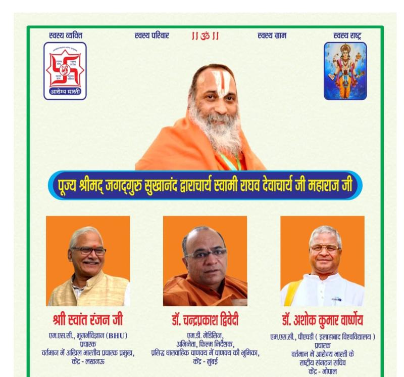 आरोग्य भारती भोपाल महानगर सभी स्वास्थ्य-जागरूक नागरिकों, चिकित्सकों, विद्यार्थियों, मीडिया प्रतिनिधियों एवं सेवाभावी कार्यकर्ताओं से आग्रह करती है कि वे इस अवसर पर अधिकाधिक संख्या में उपस्थित होकर लाभान्वित हों।