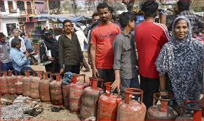 गैस भरवाने के लिए लगी लंबी लाइनें